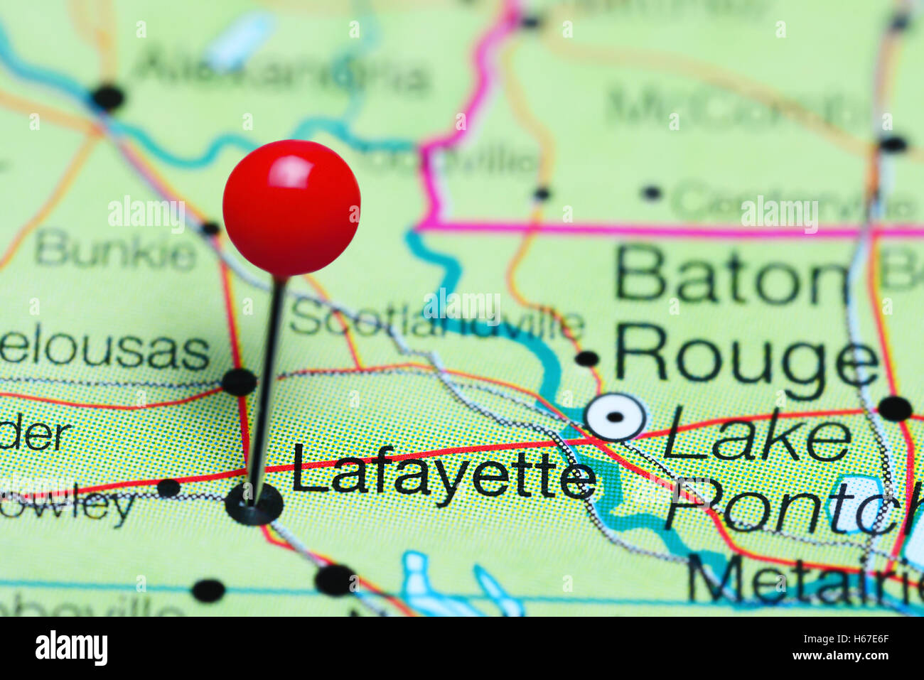 Lafayette pinned on a map of Louisiana, USA Stock Photo Alamy